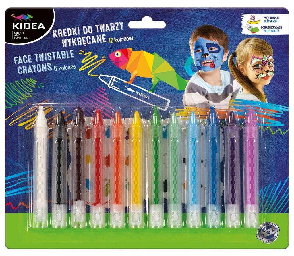 Kredki do twarzy Kidea wykręcane 12 kolorów KDTW12KA
