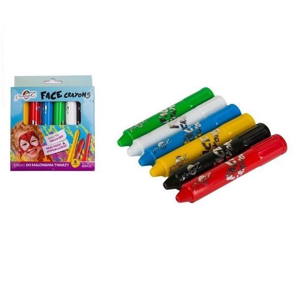 Kredki przeznaczone do malowania twarzy, w formie szminki. Idealne do malowania twarzy na imprezy: sportowe, karnawałowe, urodzinowe itp. łatwo się nanoszą i łatwo zmywają za pomocą wody z mydłem. Są bezpieczne dla skóry, nietoksyczne.