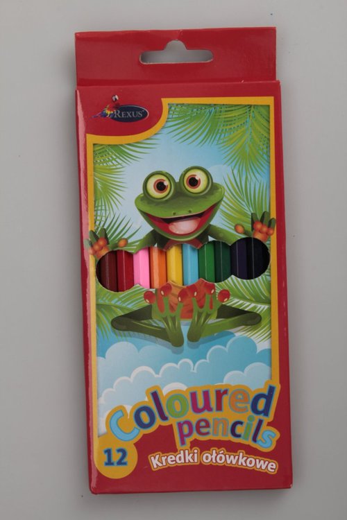 Kredki drewniane 12 kolorów, pakowane w tekturowe pudełko, 3 opakowania w zgrzewce.