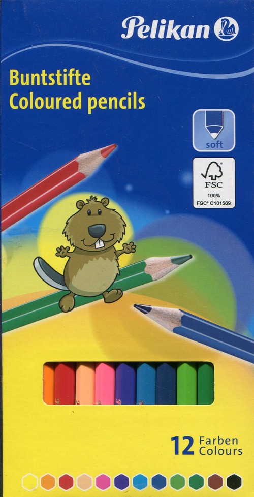 Kredki drewniane, 12 kolorów, żywe i nasycone kolory, łatwe rysowanie.