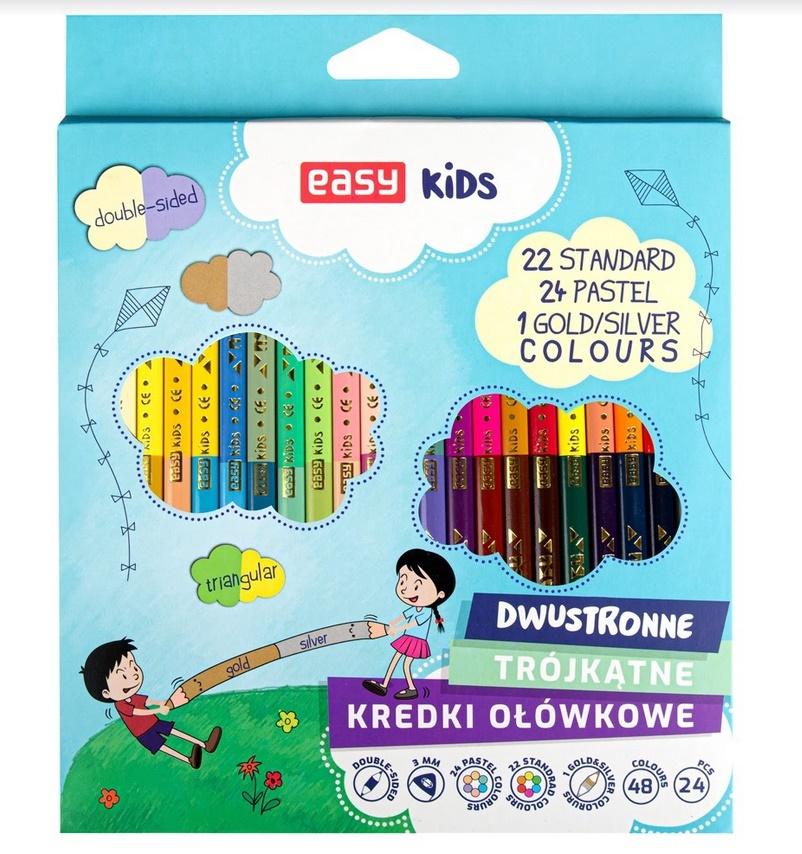 Kredki dwustronne trójkątne 48 kolorów EASY