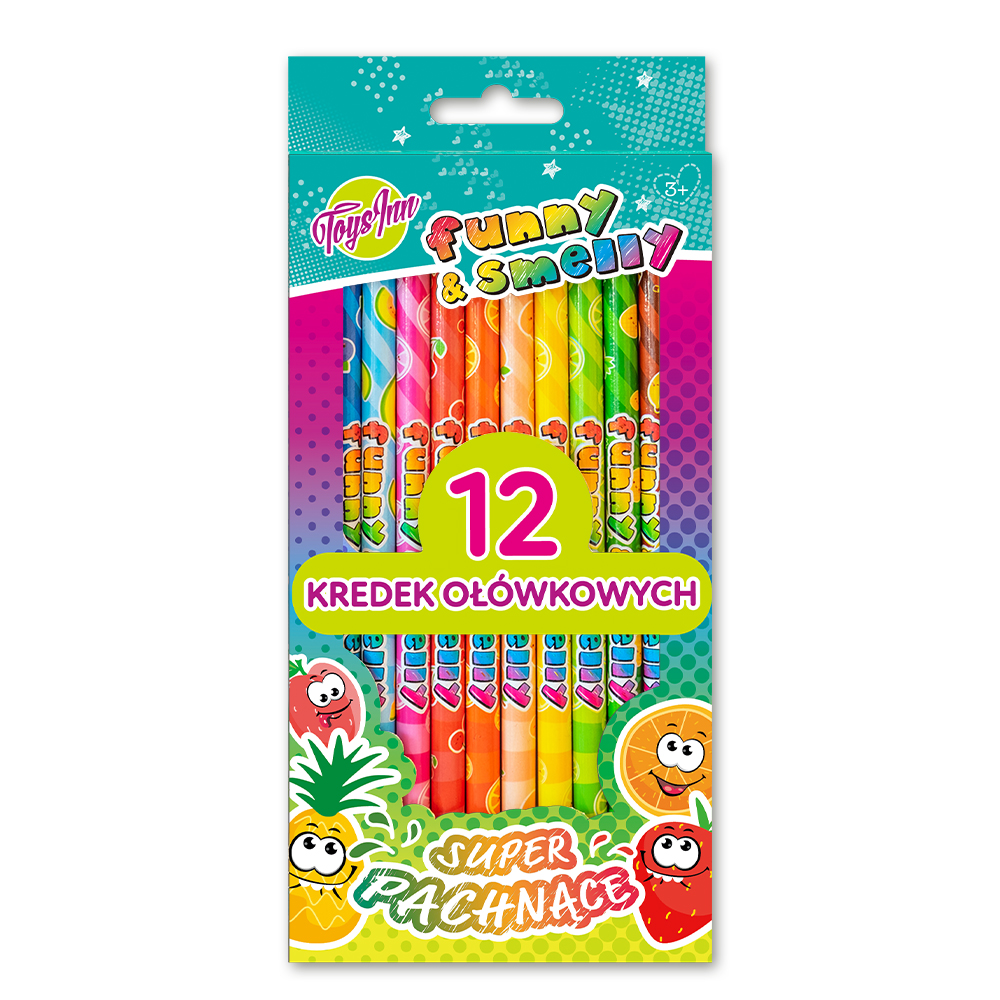 Super pachnące kredki ołówkowe ucieszą każdego młodego rysownika. Kredki ozdobione są kolorowymi wzorami i każda ma swój niepowtarzalny owocowy zapach. Zestaw zawiera 12 kredek i dedykowany jest dla dzieci powyzej 3 roku życia.