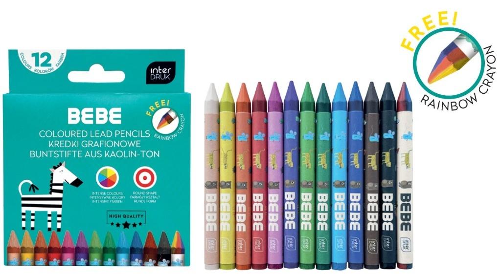 Opakowanie Kredki grafionowe 12 kolorów +1 Bebe Kids