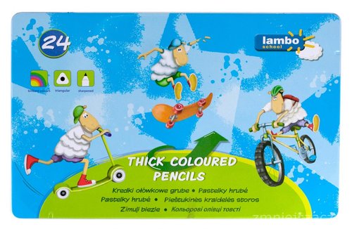 Opakowanie Kredki Lambo School Trójkątne Grube 24 Kol.Op. Metalowe
