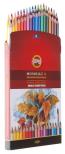 Kredki akwarelowe Mondeluz KOH-I-NOOR, komplet 36 kolorów, oprawione w wysokiej jakości drewno cedrowe. Można je używać podobnie jak ze zwykłe kredki lub też wykorzystać ich walory akwareli, czyli za pomocą wilgotnego pędzelka rozmywać w dowolnym miejscu rysunek. Naniesioną kredkę można całkowicie rozprowadzić pędzlem po rysunku, lub tylko częściowo pozostawiając linie, kontury, kreski. Dzięki wieloletniemu doświadczeniu i starannemu wykonaniu KOH-I-NOOR kredki Mondeluz są odporne na zawilgocenie i zachowują swoje walory.