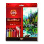 Profesjonalne kredki akwarelowe oprawione w wysokiej jakości drewno cedrowe. Można je używać podobnie jak ze zwykłe kredki lub też wykorzystać ich walory akwareli, czyli za pomocą wilgotnego pędzelka rozmywać w dowolnym miejscu rysunek. Naniesioną kredkę można całkowicie rozprowadzić pędzlem po rysunku, lub tylko częściowo pozostawiając linie, kontury, kreski. Dzięki wieloletniemu doświadczeniu i starannemu wykonaniu KOH-I-NOOR kredki Mondeluz są odporne na zawilgocenie i zachowują swoje walory. Do nabycia w zestawach kolorów w pudełkach tekturowych i metalowych, na sztuki, oraz zestawach z temperówką i pędzelkami.