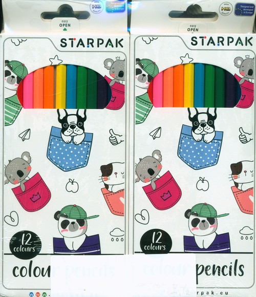 Zgrzewka zawiera 12 sztuk pudełek kredek ołówkowych po 12 kolorów