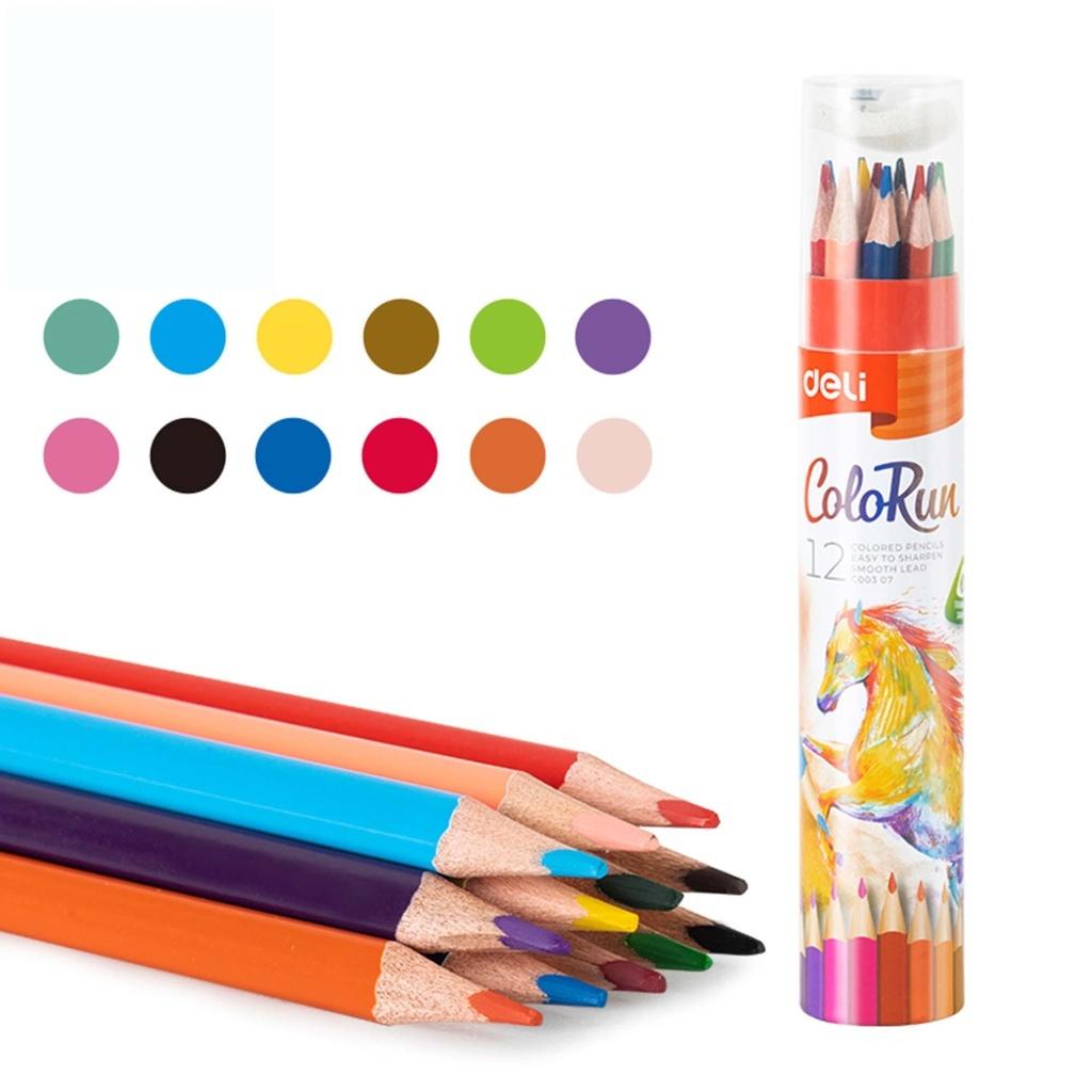 DELI Kredki ołówkowe 12 sztuk tuba + temperówka