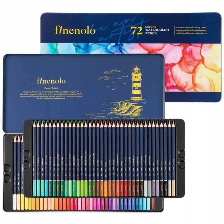 Kredki ołówkowe akwarelowe Finenolo metalowe opakowanie 72 kolory
