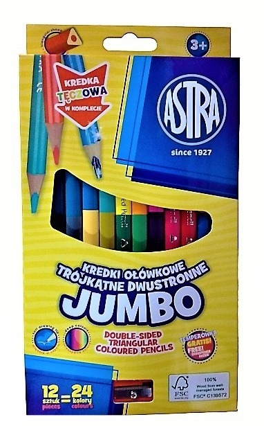 Kredki dwustronne ASTRA w intensywnych kolorach. 12 Kredek to aż 24 kolory!