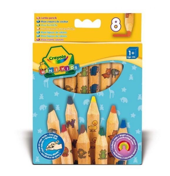 Przybory dorysowania z serii CRAYOLA MINI KIDS - przeznaczone dla dzieci w wieku 1+. ZAWARTOŚĆ: 8 kredek ołówkowych w grubych, ozdabianych ręcznie, drewnianych oprawach.