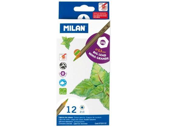 Kredki sześciokątne. Ołów o średnicy 3,3 mm, miękki. System ochrony rysika LPS zwiększający odporność na złamanie. Wysokiej jakości pigmenty w żywych, intensywnych kolorach, odporne na działanie światła. Kreska wykonana kredką MILAN jest miękka, jednolita o wyraźnym odcieniu. Nie tworzy rowków ani nie niszczy papieru.
