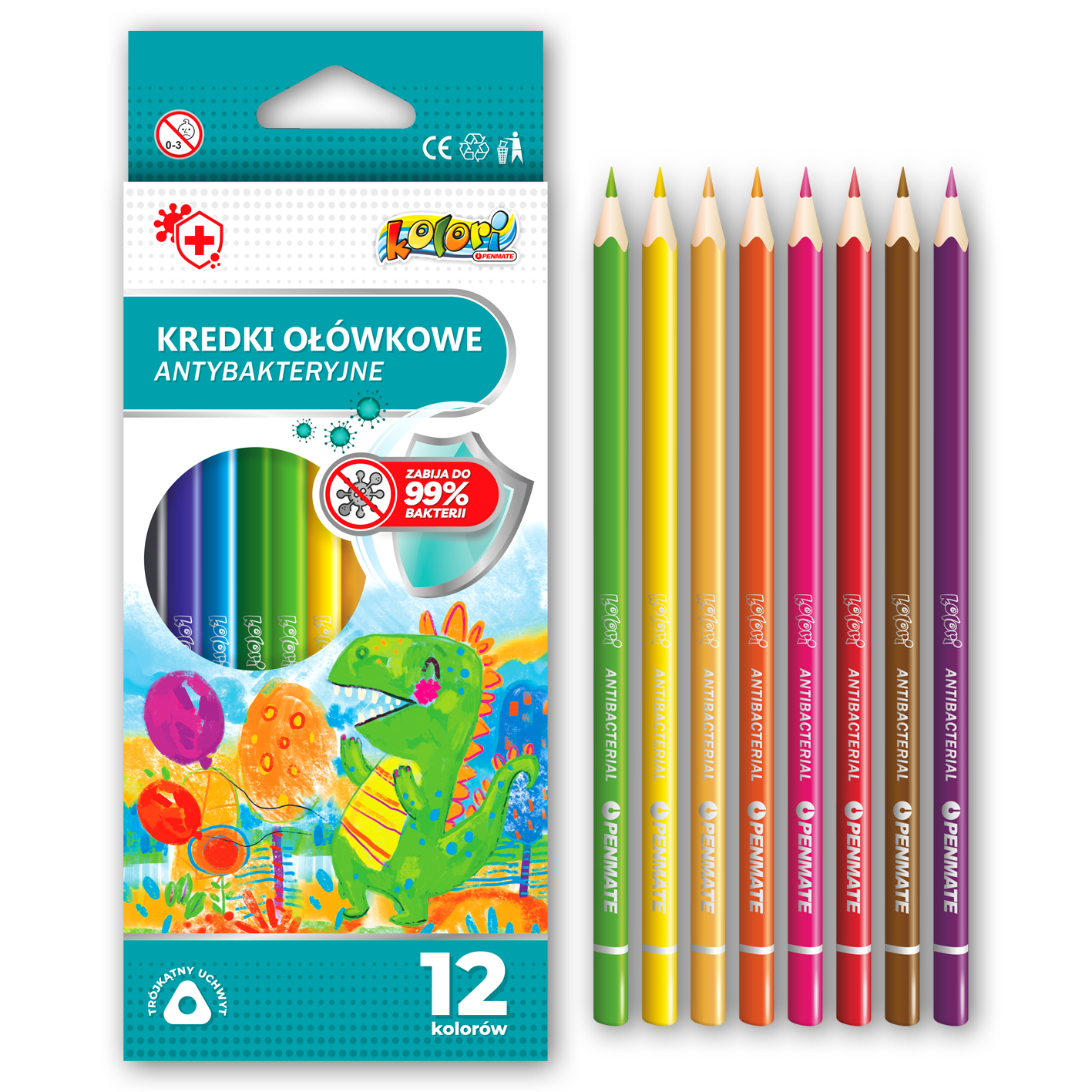Opakowanie Kredki ołówkowe Penmate kolori premium antybakteryjne 12 kolorów