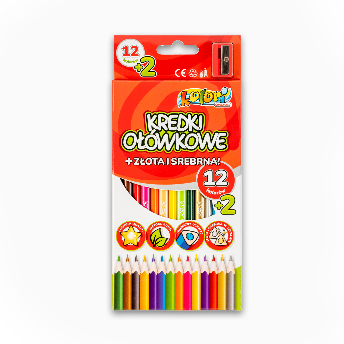 Opakowanie Kredki ołówkowe Penmate kolori premium trójkątne 12+2 kolory z temperówką