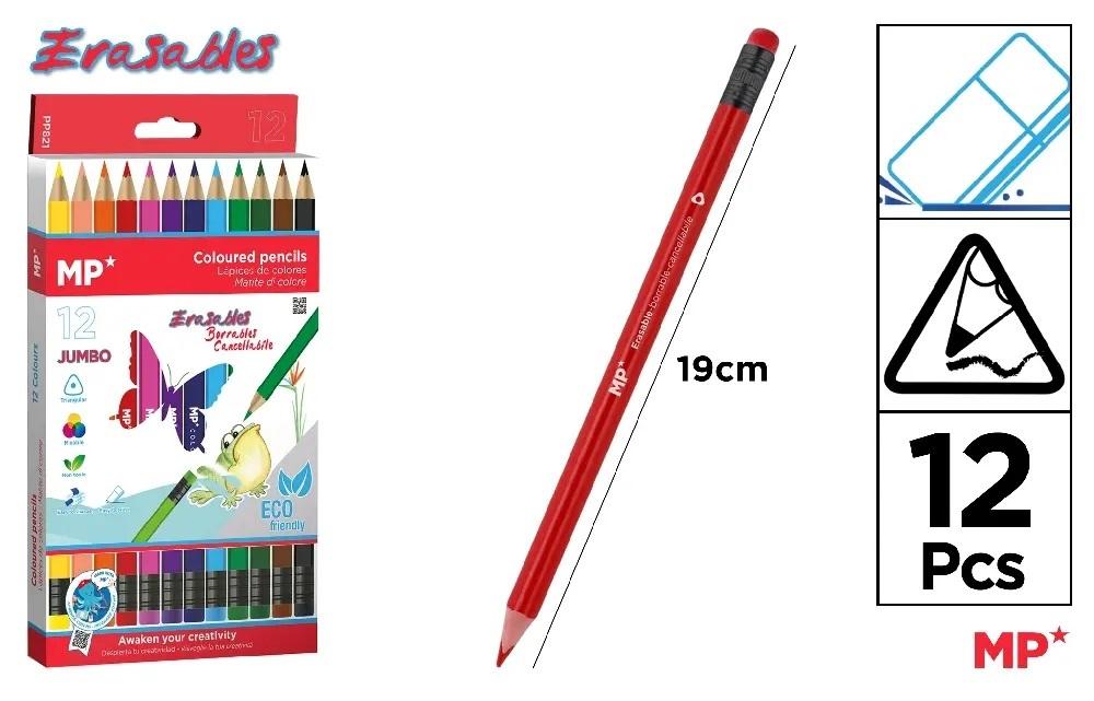 Kredki ołówkowe ścieralne z gumką Jumbo 12 kolorów