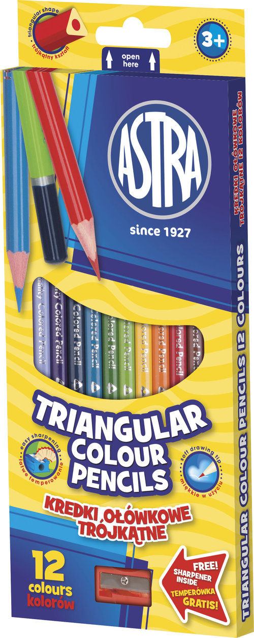 Kredki ołówkowe trójkątne 12 kolorów ASTRA