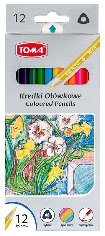 Opakowanie Kredki ołówkowe trójkątne 12 kolorów TOMA