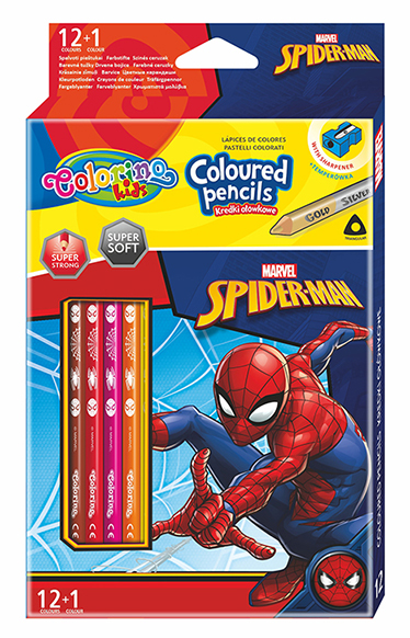 Opakowanie Kredki ołówkowe trójkątne Colorino Kids 13 kolorów 12 sztuk z temperówką Spiderman