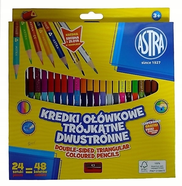 Opakowanie Kredki ołówkowe trójkątne dwustronne Astra 48 kolorów z temperówką
