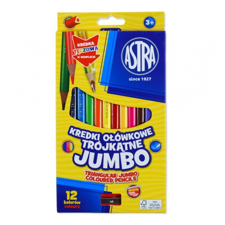 Opakowanie Kredki ołówkowe trójkątne jumbo Astra 12 kolorów z temperówką