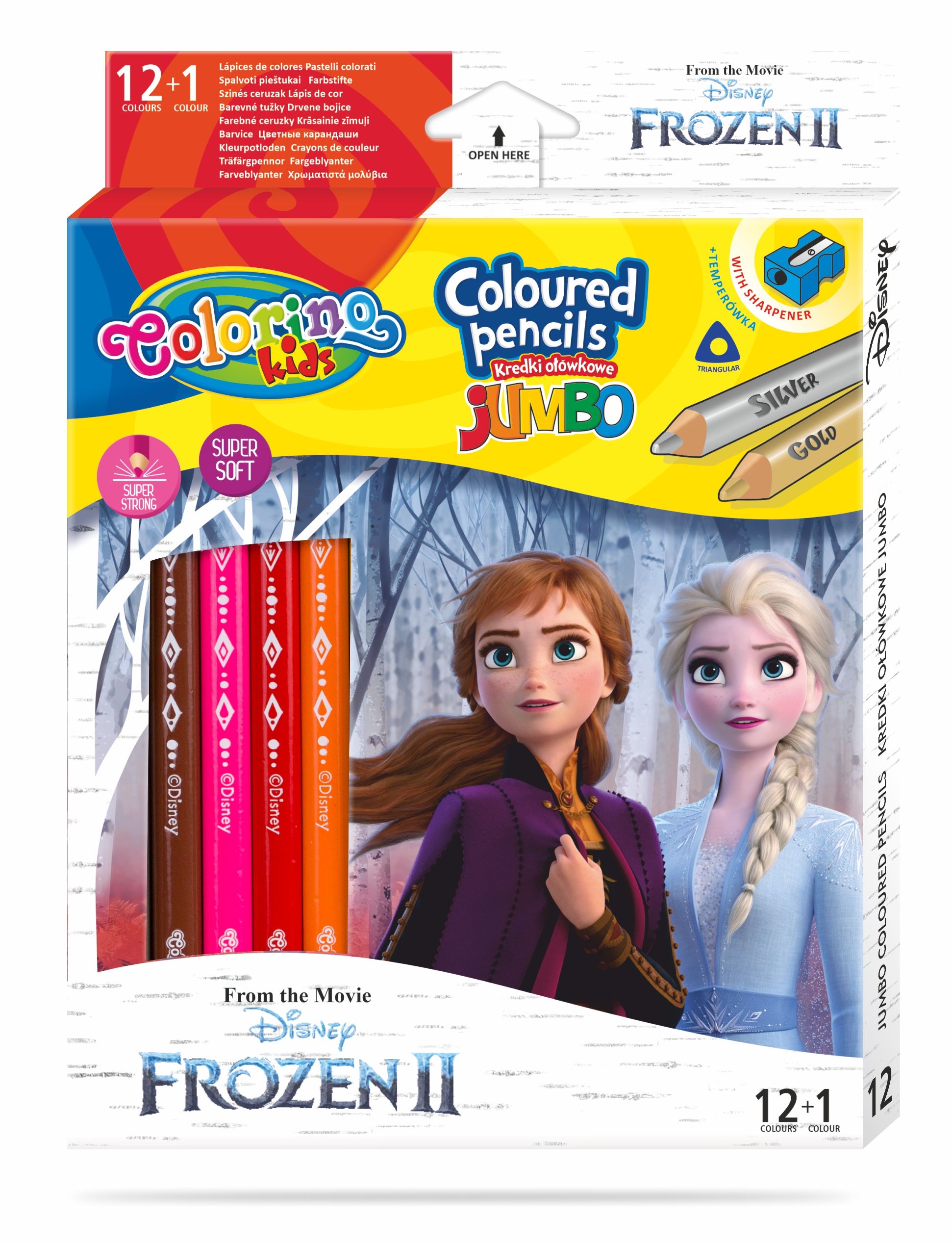 Opakowanie Kredki ołówkowe trójkątne jumbo Colorino Kids 13 kolorów 12 sztuk z temperówką Frozen