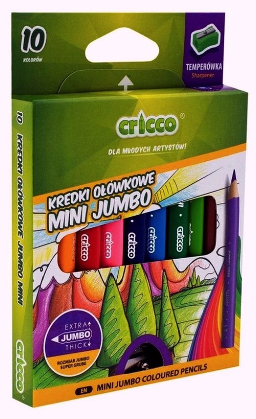 Kredki Cricco trojkątne mini Jumbo 10 kolorów opakowanie zawiera 6 sztuk
