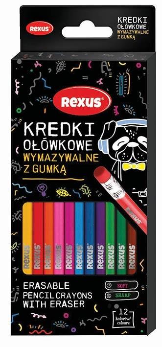 Kredki ołówkowe z gumką wymazywalne 12 kolorów