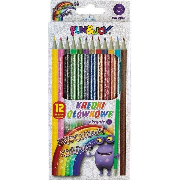 Kredki ołówkowe12 kolorów, okrągłe brokat