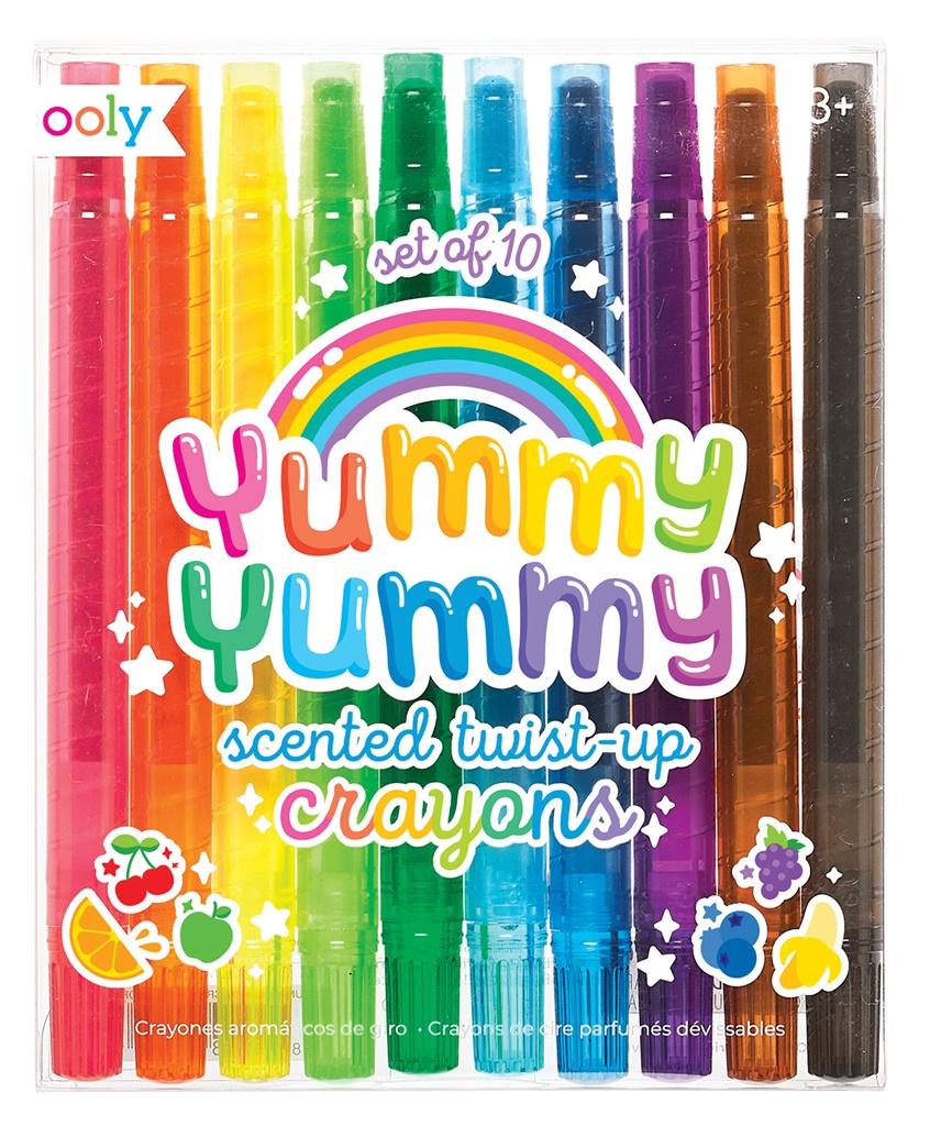Nie ma dzieciństwa bez kolorowych kredek. Są równie nieodzowne co klocki i piłka. Mają moc by przegonić nudę i zły nastrój bez względu na czas i miejsce. Do kolorowania, rysowania i pisania. Dzięki nim mali i duzi mogą przenieść na papier wszystkie fantazje jakie zagoszczą w ich głowach. Nigdy nie wiesz, czy nie otworzą dziecku bram do fascynującej przygody na resztę jego życia. Zestaw świecowych kredek Ooly Yummy Yummy stworzono z myślą o tym by ułatwić dzieciom debiut artystyczny i kreatywną zabawę. Każda kredka ukryta jest w poręcznej oprawce chroniącej przed przypadkowym złamaniem. Dzięki niej podczas rysowania dziecięce dłonie nie brudzą się od samego trzymania kredki. Gdy ?rysik? się wypisze wystarczy go wykręcić bez konieczność odzierania kredki z osłonki. By zabawa była jeszcze przyjemniejsza i bardziej artystyczna każda kredka pięknie pachnie. Wykręcane Kredki Ooly Yummy Yummy: komplet świecowych kredek w oprawkach; 10 kolorów w zestawie; każda kredka to inny zapach (zielone jabłko, pomarańcza, winogrono, mięta itd.); kredki posiadają mechanizm Twist Up ? gdy kredka przestaje rysować wystarczy ją wykręcić jak pomadkę; oprawka chroni kredki przed połamaniem a dłonie przed zabrudzeniem.