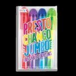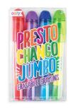 Wielkie pomysły i duże projekty kolorowania wymagają dużych kredek! Z Dużymi kredkami presto, nie tylko pokolorujesz duże obrazki ale i wytrzesz błędy w mgnieniu oka. Presto to niesamowite, duże kredki z przekładanym wkładem w plastikowej oprawie, z gumką do ścierania na skuwce w odcieniu kredki. Opakowanie zawiera 4 duże kredki, a każda kredka ma dwa pasujące do siebie kolory oraz gumeczkę do ścierania. Kredek nie trzeba temperować, wystarczy zmienić wkład. Wkłady można mieszać między kredkami i tworzyć swoje własne kompozycje kolorów w kredce.