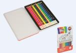 - bezpieczne metalowe opakowanie: każda kredka ma swoje miejsce w plastikowej wytłoczcekażda kredka posiada nadruk i lakierowaną końcówkę