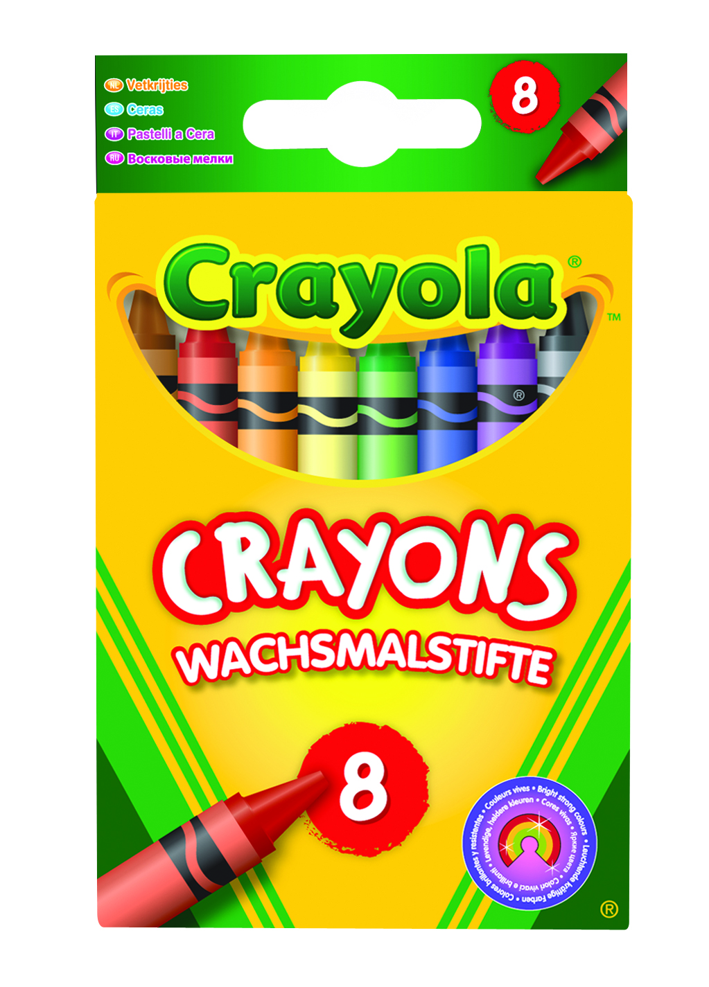 Przybory dorysowania z serii CRAYOLACORE - przeznaczone dla dzieci w wieku 3+.Zestaw zawiera 8 tradycyjnych kredek świecowych -czerwony, żółty, zielony, niebieski, brązowy, czarny, pomarańczowy i fioletowyKredki Crayola zostały zaprojektowane ze szczególnym naciskiem na prawdziwy kolor, gładkość i trwałość.