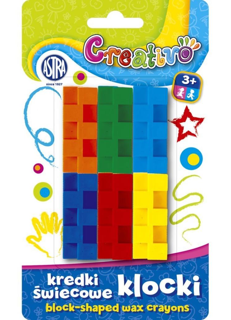 Kredki świecowe - klocki 6 kolorów Astra