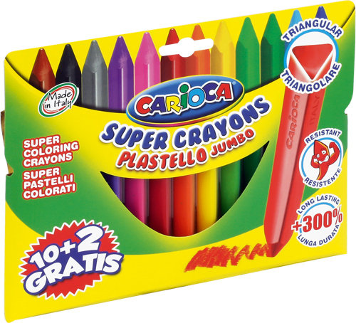 – nowoczesne kredki świecowe: trwalsze, mniej łamliwe niż tradycyjne – nowa formuła zapewnia trzykrotnie dłuższe pisanie – niebrudzące – trójkątny kształt zapewnia wygodne trzymanie – zestaw 12 kolorów – zgodne z normą CE – średnica kredki 1,1 mm