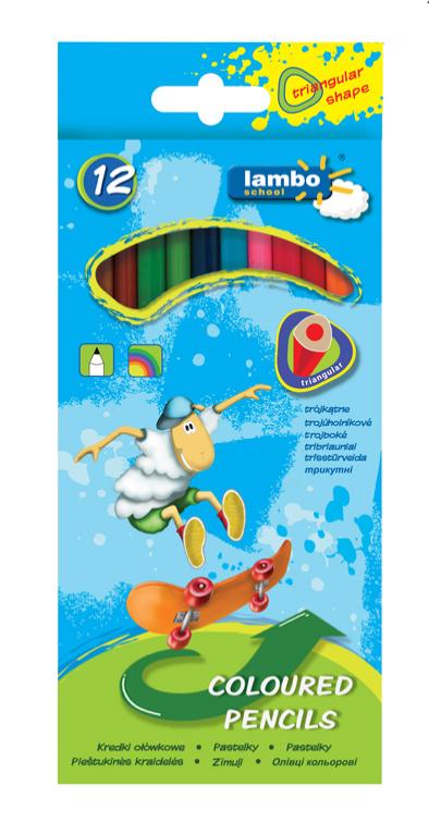 Kredki szkolne trójkątne 12 kolorów LAMBO