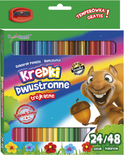 KREDKI SZKOLNE TRÓJKĄTNE DWUSTRONNE 24/48 KOLORÓW Z TEMPERÓWKĄ