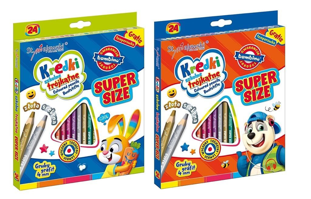 Opakowanie Kredki szkolne trójkątne SUPER SIZE 24 kolory + temperówka