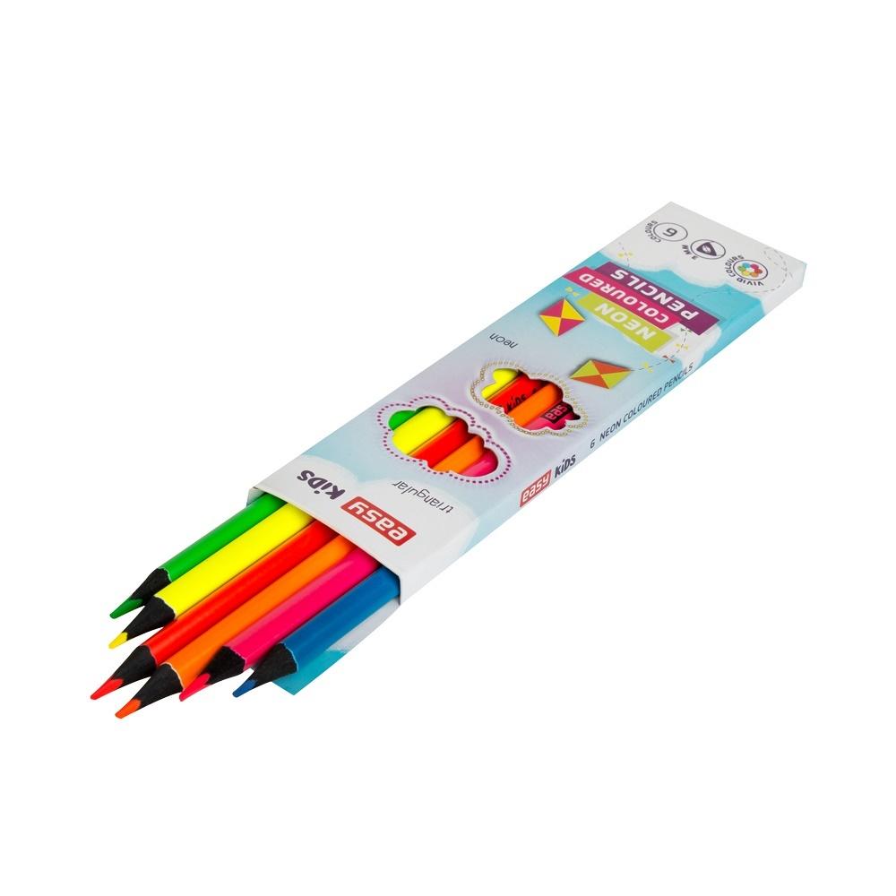 Kredki drewniane trójkątne, 6 neonowych kolorów