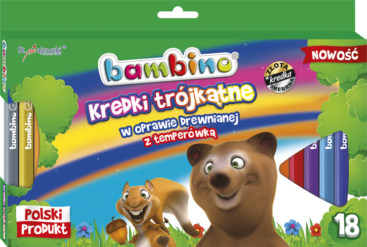 Opakowanie Kredki trójkątne Bambino w oprawie drewnianej 18 kolorów + temperówka