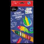 Kredki trójkątne bezdrzewne Jumbo 12 kolorów,intensywne kolory, trójkątny kształt, grube, łatwe w temperowaniu,