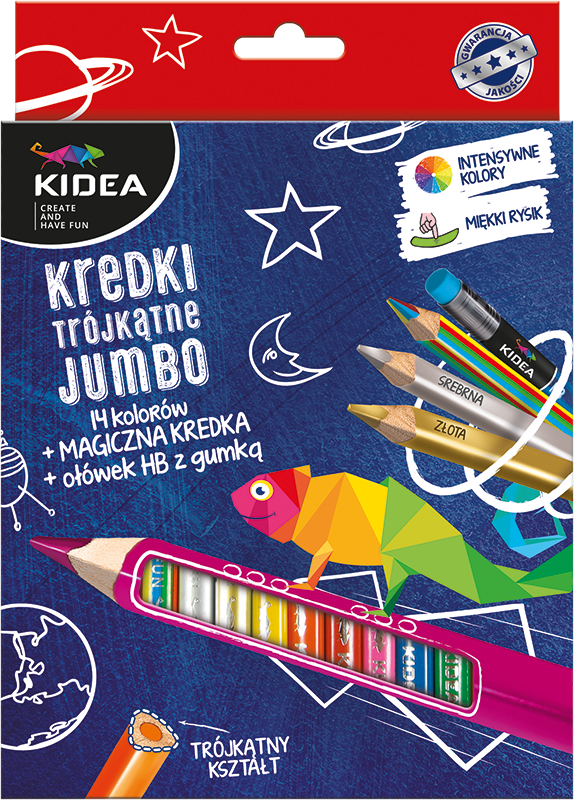 Kredki trójkątne grube 14 kol.+ołówek+ magic DERFO