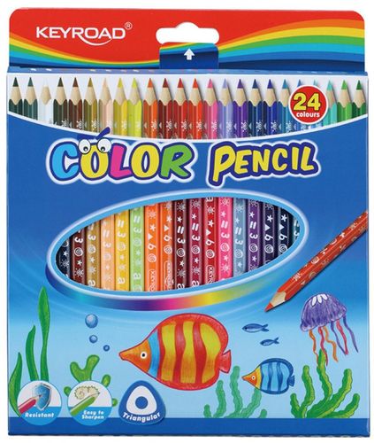 KREDKI OŁÓWKOWE TRÓJKĄTNE KEYROAD 24 KOLORÓW MIX.