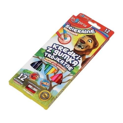 Kredki trójkątne ścieralne 12 kolorów