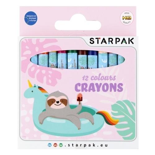 Nie łamią się podczas  rysowania ani strugania, dobrze kryją malowaną powierzchnię. Zestaw 12 kredek woskowych w żywych barwach idealnych dla najmłodszych artystów, którzy dopiero zaczynają malować. Zawartość zestawu: 12 szt. kredek woskowych Koala. Wykonany z trwałego wosku. Wymiary/waga: wymiary produktu (dł.)[cm]: 9 cm, wymiary opakowania (dł. x wys. x gł.)[cm]: 10x12x1, waga produktu w opakowaniu [kg]: 0,07 kg. Nie odpowiednie dla dzieci poniżej 3 lat. Pakowane w pudełeczko z okienkiem. Pakowane iner 12 szt. Karton zbiorczy 144 szt. Cechy produktu:- najbardziej podstawowe przybory plastyczne w przedszkolu i szkole - żywe i intensywne kolory- nie brudzą- pakowane w pudełko z systemem easy open dzięki, któremu można je łatwo otworzyć i potem zamknąć- kredki woskowe są wykonane z wosku, mają tłustą konsystencję i dzięki temu są odporne na wodę. Kredki to najbardziej podstawowe przybory plastyczne. Wykorzystywane podczas zabawy i nauki w domu, przedszkolu i szkole. Wszystkie kredki STARPAK mają żywe kolory. Dzięki czemu tworzone prace będą zachwycały intensywnością i nasyceniem barw. Kredki Starpak są łatwe w struganiu i nie łamią się, co jest bardzo ważne, szczególnie dla młodszych dzieci. STARPAK oferuje dwa rodzaje kredek:- woskowe, zwane też świecowymi. Kredki woskowe STARPAK są wykonane z kolorowanego wosku owiniętego w papierową obwolutę. Są lekko tłuste i odporne na wodę. Często są wykorzystywane przez młodsze dzieci, bo łatwo jest im je trzymać w ręce (są grube) i nie łamią się nawet przy dużym nacisku. Dziecko może tez rysować całą ich powierzchnią. Ponieważ nie brudzą kredki woskowe STARPAK lubią również rodzice.