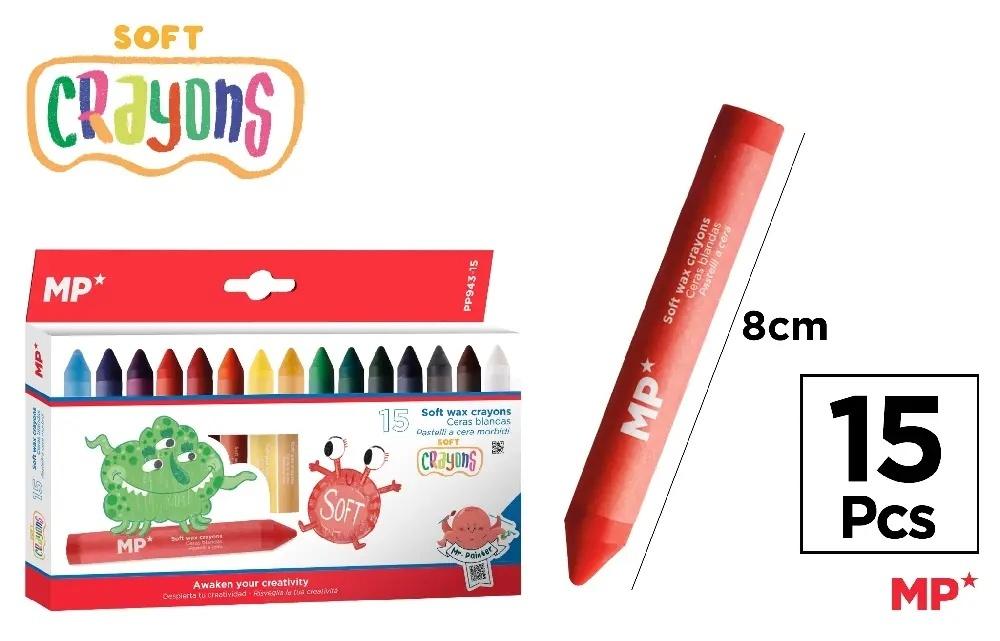 Kredki woskowe miękkie 15 kol. 15szt,opakowanie MP