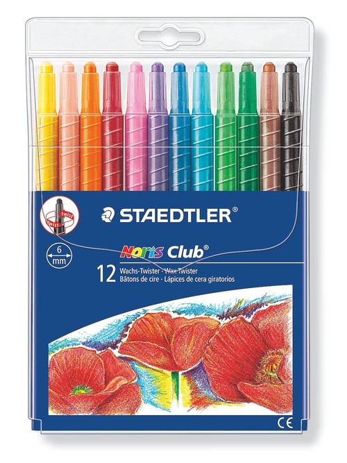 Wykręcane Twistery wykręcane kredki woskowe firmy Staedtler długi grafit o przekroju 6 mm w plastikowej obudowie 12 kolorów w plastikowym etui