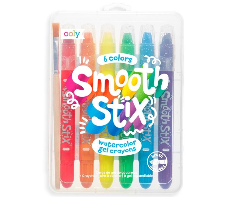 Co jest gładkie i kolorowe? Kredki żelowe Ooly Smooth Stix. Dają piękne intensywne kolory z których dzięki pędzelkowi i wodzie można wydobyć efekt akwareli. Dzięki oprawce, z której kredka jest wykręcana nie brudzą dłoni, nie łamią się przez przypadek a skuwka nie pozwala im wyschnąć. Zapakowane w etui idealnie nadają się do tego by zabrać je w podróż. W zestawie ze szkicownikiem zapewnią wiele dobrej zabawy i mogą być fajnym pomysłem na prezent. Kredki Ooly Smooth Stix: żelowe wykręcane kredki akwarelowe; 6 kolorów; każda kredka w oprawce ze skuwką; pędzelek w zestawie; nie wysychają; etui ułatwia transport i przechowywanie; zmywalne; można użyć wody dla uzyskania efektu akwareli.