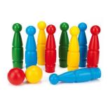Wspaniała gra w kręgle w wersji dla najmłodszych! Zestaw składa się z 9 kolorowych kręgli i 2 kul. Kręgle są doskonałą formą spędzania wolnego czasu dla dziecka, ponieważ można grać w nie w pojedynkę lub w grupie, rozwijając przy tym zdolności manualne oraz precyzję. Produkt zapakowany w karton ułatwiający ich przechowywanie.