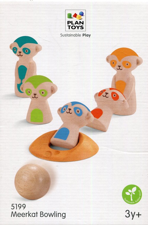 Drewniane kręgle przedstawiające postaci sympatycznych surykatek. Znana gra zręcznościowa, w której chodzi o zbicie jak największej ilości kręgli jednym rzutem.
