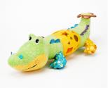 Szalony Krokodylek w soczystych kolorach rozweseli każdego ponuraka. Jego ciałko wykonane jest z materiałów o zróżnicowanej fakturze, które pomagają rozwijać umiejętności poznawcze dziecka. Gumowy brzuszek zabawki zdobią otwory w kształcie cyferek, a w jego wnętrzu ukryta jest grzechocząca kuleczka.